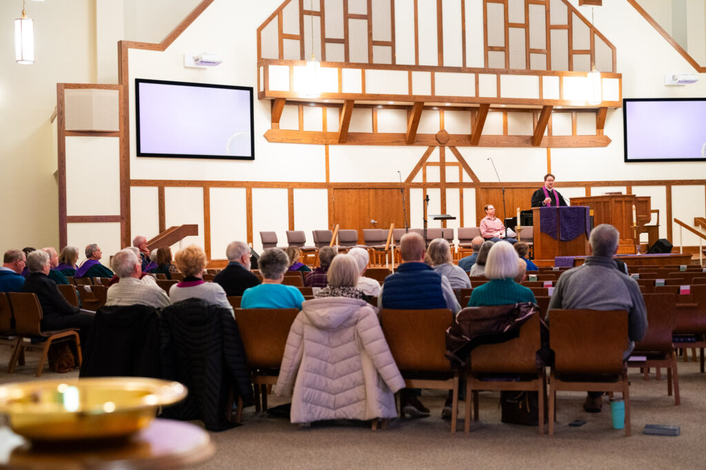 - A space in the Gathering Area just outside the sanctuary provides families with small children plenty of room to stretch their legs and play. Parents are still able to hear the liturgy and see information projected on the sanctuary screens.