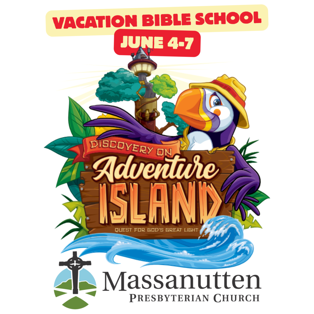 Massanutten Presbyterian Church is excited to bring back VBS (Vacation Bible School) this summer! Children preschool through completed fifth grade are invited to join us June 4-7 – right after Rockingham County Public Schools get out – for Discovery on Adventure Island!